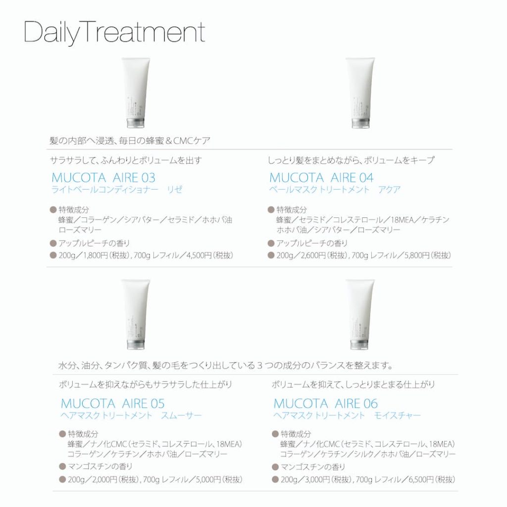 Hair care AIREアイレ プロフェッショナルが行うヘアケアを自宅でも 「プロフェッショナルケア成分を高濃度に処方」した全12品のホームケア商品。 ヘアスタイルの雰囲気は素材の美しさ、髪の質感、デザインの3つのファクターによってつくりだされる空気そのものです。 髪質、ダメージ、デザインに対応したホームケアシステムお客様が求める様々な雰囲気をつくりだす。それがAIRE=魅力を加える微風です。